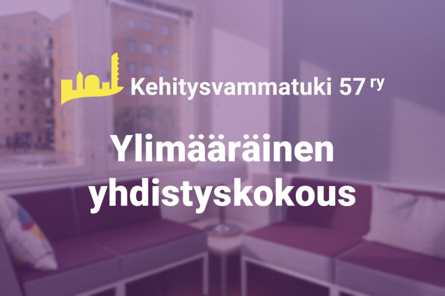 Kehitysvammatuki 57 ry:n hallitus kutsuu yhdistyksen jäsenet ylimääräiseen yhdistyskokoukseen. Kokouksessa käsitellään pääomalainan myöntäminen Kehitysvammatuki 57 ry:n omistamalle ViisSeiska Oy:lle.